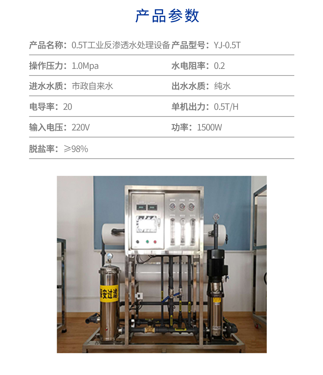 0.5T工业反渗透水处理设备